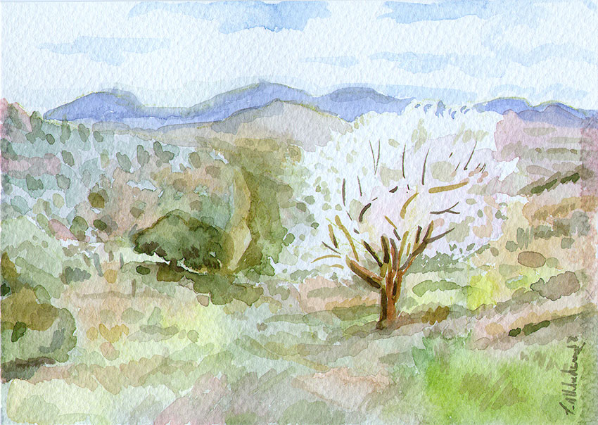 Realizo esta aguada para probar un material que nunca antes había utilizado, los lápices y barras de grafito acuarelable. La experiencia ha sido satisfactoria, permiten las transparencias y veladuras de la aguada combinadas con la precisión del trazo del lápiz.